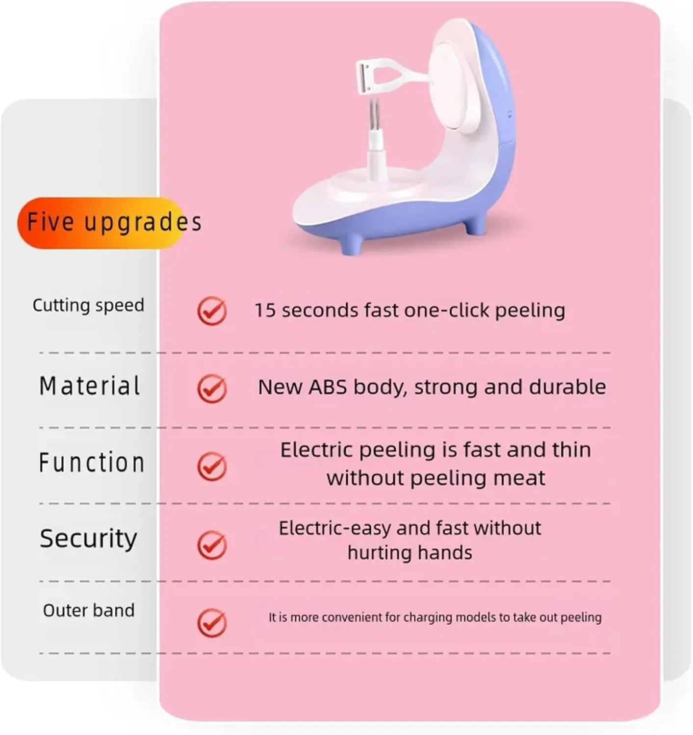 - Effortlessly peels potatoes, fruits, and vegetables with a powerful automatic rotating mechanism.